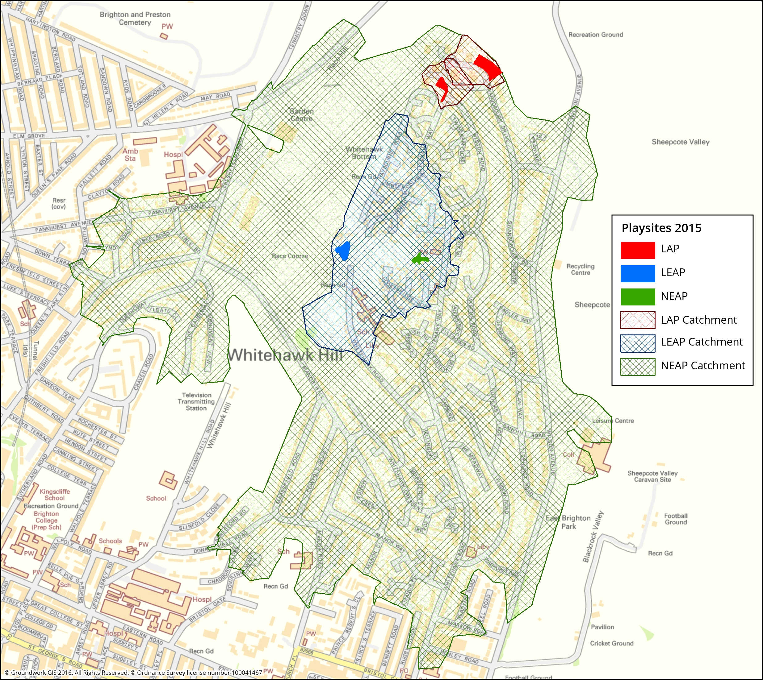 When Brighton & Hove Council were to indentify where savings in maintenance costs for their playparks could be made they hired Groundwork GDS to provide a GIS and statistical analysis. This was achieved by analysing 52 play areas under a number of criteria including the overlap in walking catchments for times of 1,5 and 15 minutes – calculated using ArcGIS Network Analyst – and ancillary data such as local deprivation and 0 – 15 year old population numbers. These criteria were weighted accordingly and each park was given a rating – these values were combined to produce a rank for each park. This allowed conclusions to be generated that both cut maintenance costs for Brighton & Hove Council and restricted closures of parks that would have large impact on local communities. This is an example where spatial analysis can help in decision making by weighting different geographic criteria agaisnt each other.